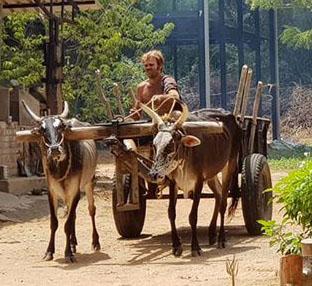 - Wood from sustainable Auroville forests, sometimes brought by bullock cart, bring our wood in a slow fashion