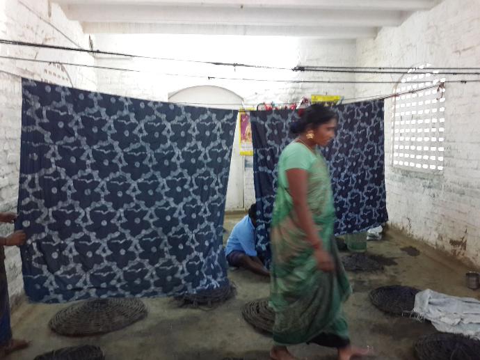 Our beginnings: finding a family that had kept the ancient knowledge of the natural indigo fermentation dyeing processes alive for generations - and bringing it back to 100% natural. The lack of smell gave it away! Since starting with a few 100 litre vats we now have 62 submerged vats of 1000 litres each. They were all fabricated locally in Auroville and are maintained like babies - yes that's how we see them, they need food & care & love every day. The organic growth that we have experienced is due to dedication, hard work, loyal customers & the support of Levi Strauss & Co. L.S.&Co. handpicked our Founder Jesus for their first Collaboratory program. Out of ten ideas around water saving, he was one to receive a grant for upscaling. We do regular lab checks to make sure that the indigo cakes we get remain unadulterated. Our supplier is located not far from us and they harvest the indigo leaves & extract the pigment through submerging & thrashing in water baths. Jesus continues to experiment and learn more. He talks about indigo & natural dyes across the world and is always interested in hearing from other experts or novices on the topic.