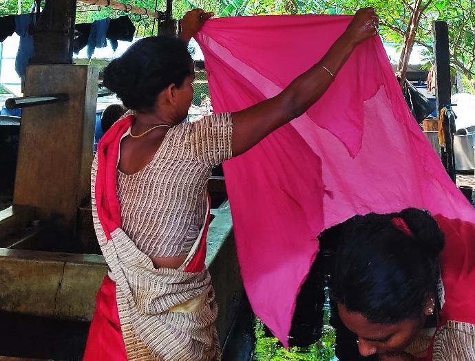 A favourite for its luscious pinks, wonderful purples, and exquisite reds, Sappan wood is not always easy to dye with or to maintain, but we've got pretty good at it. The dyestuff of the plant that is doing the job is called brazilin.